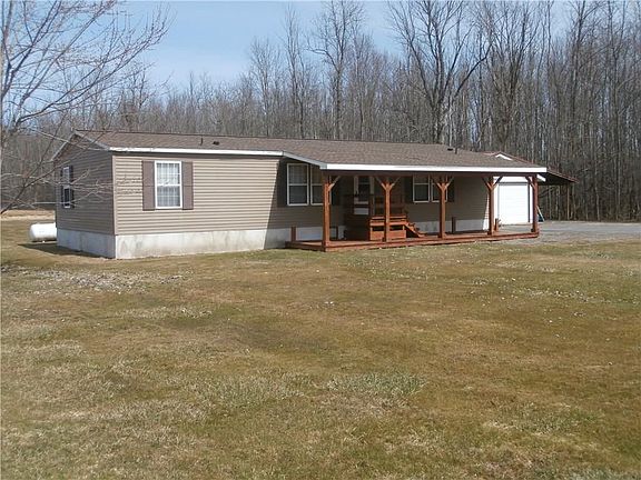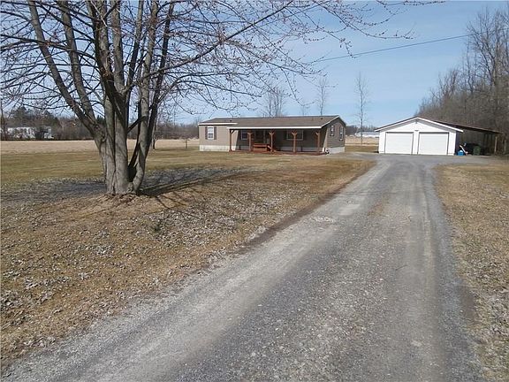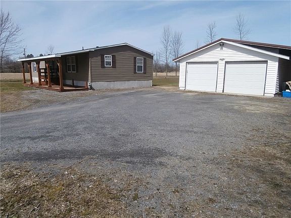 Country comfort featured in this well cared for Manufactured Home situated on a open 1 acre lot, along with a large detached 2 bay garage w/ attached carport, lovely covered front porch, rear deck and shed. Home boasts 3 bedrooms, 2 baths, family room and laundry hook ups. Easy access to NYS Thruway, Del Lago, the Outlet Center and Cayuga Wine Trail.
