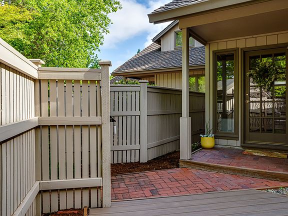 Set on a private drive, this townhome offers a rare blend of privacy, charm, and natural surroundings. Inside, you'll find vaulted, beamed ceilings with skylights, custom built-ins, wood-trimmed windows, and French doors opening to a fenced patio. The kitchen is fully equipped with range, refrigerator, dishwasher, and washer/dryer. The upstairs Primary bedroom offers a walk-in closet and additional storage. Skylights bring in generous natural light, and warm wood finishes add character throughout. Includes a covered carport with storage. Conveniently close to Oakway Center, restaurants, and golf.