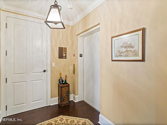 Luxury condo on St Johns River in exceptional gated community of Old San Jose on River. Relax and enjoy the gorgeous views every day and carefree lifestyle. Elevator access privately opens into your unit. Unique and coveted private 2 car garage comes with the unit. Beautiful hardwood floors flow throughout. Open concept living from spacious kitchen to family room. Gorgeous sunsets and river views can be enjoyed from inside or outside on spacious balcony. Easy access to stairs leading to grassy area and dock convenient without using the elevator. Separate office tucked off foyer when you want to work from home. Community amenities include pool, fitness room, summer kitchen area, social room and outdoor fire pit. Conveniently located to downtown & walking distance to multiple restaurants.