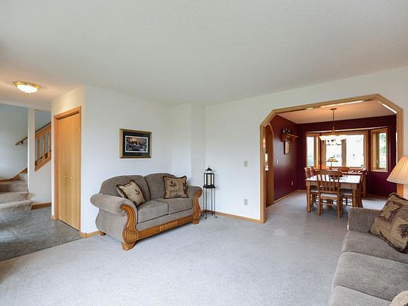 A wonderful, two-story, walkout with room to grow! Enjoy small town, country living, with easy commute to suburbs and Cities! Three bedrooms up! Master suite includes private bath and walk-in closet! Large main level has a formal living room and bayed dining room, an open kitchen with large breakfast bar and informal dining, and a vaulted family room with floor to ceiling, stone, gas fireplace! Three-car garage enters into a large mudroom with walk-in closet! Pretty backyard with privacy fence!, Directions County Rd 19 to 15th St NE- East to Irvine Drive- South to home