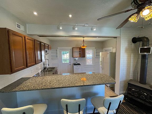 - Fireplace features: wood stove