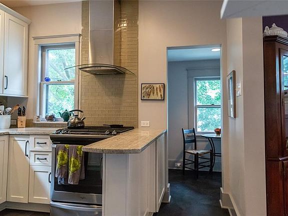 Welcome home to this spectacular Highland Park treasure! Unique skylights in the master bedroom and modern-design circle and triangle cut-outs make this house truly one of a kind. The charming art-deco built-in cabinets flank either side of the fire place and have been immaculately well maintained. Beautifully renovated kitchen features stainless energy efficient refrigerator, granite counter tops, new gas stove and a hidden panel dishwasher. The glass tile backsplash with clean white cabinets give the kitchen a classic look and the island opens into the spacious dining room. Hardwood floors throughout the house with a soothing color palate of grays and greens on the first and second floors. Bathroom updated with clean shades of gray and silver accent tile. Master bedroom features a skylight and loft space accessed by stylish spiral staircase. Garage parking and beautiful outdoor deck/garden space - all within walking distance to Highland Park and the Bryant Street shopping district.