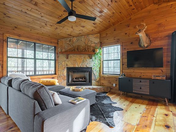 IMPECCABLE OWNER FINANCING AVAILABLE! Offering an amazing financing opportunity for qualified buyers, seller financing at 4.5% interest with 20% down at a 4 year balloon G half the rate of the market! Adventure awaits at this quintessential log home in the heart of Cherry Log only minutes away to Downtown Blue Ridge and Ellijay... welcome to Bear Paw Lodge! Immaculately maintained and well-equipped with a new roof, recently stained, and with a full interior overhaul featuring a chic take on rustic living with a modern kitchen, sleek lighting throughout, comfortable furnishings, and a stone F/P for true rustic mountain moments. COMPLETELY PRIVATE and w/ year-round canopy views, large screened-in porch area, and WHOLE HOUSE GENERATOR, this cabin won't last long. Sold fully furnished and made for a perfect retreat, short term rental investment, or home away from home. Call today!