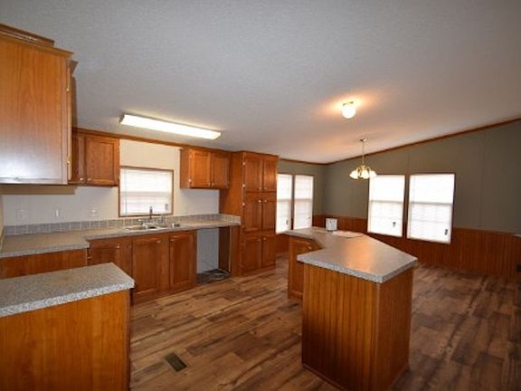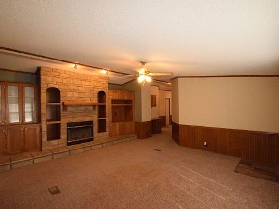 2004 Doublewide with 4 bedrooms, 2 bathrooms on 0.48 acres of land. This home features a brick fireplace, garden tub, walk-in closets, large deck, new carpet, new paint, and a kitchen island. Possible owner finance with 10% down.