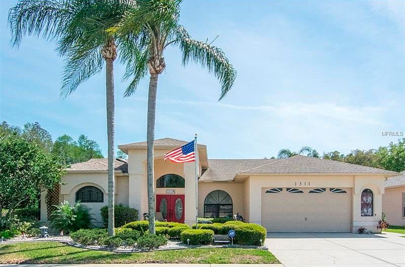 Perfectly Manicured 3 Bedroom, 2.5 Bathroom Pool Home In The Desirable Trinity Area. Enter Through Double Doors Into An Elegant Living Room With A Gorgeous View Of The Newly Refinished Saltwater Pool 2015, Spa And Pond. This Home Is Great For Entertaining With Multiple Views Of The Lanai And Pool. Pocket Slider Opens To The Outdoor Kitchen And Shower. The Large Kitchen With New Granite 2016 And Stove Top 2016 Is Sure To Please The Chef With Abundance Of Cabinets And Counter-Tops with Bamboo Floors leading into the Family Room With Gas Fireplace. Spacious Secondary Bedrooms With Full Bath Which Includes Easy Step Down Tub. The Large Master Retreat Includes Gorgeous Pool & Pond View, Walk-In Closets, And Room For Sitting Area. Master Bath Offers Jetted Bathtub And His & Her Sinks. Extra Features Include NEW ROOF Dec. 2012, NEW A/C 2016, NEW Pool Filter 2016, Recessed Lighting, Skylight And Oversized Garage. Community Provides Tennis Courts As Well! A Must See!