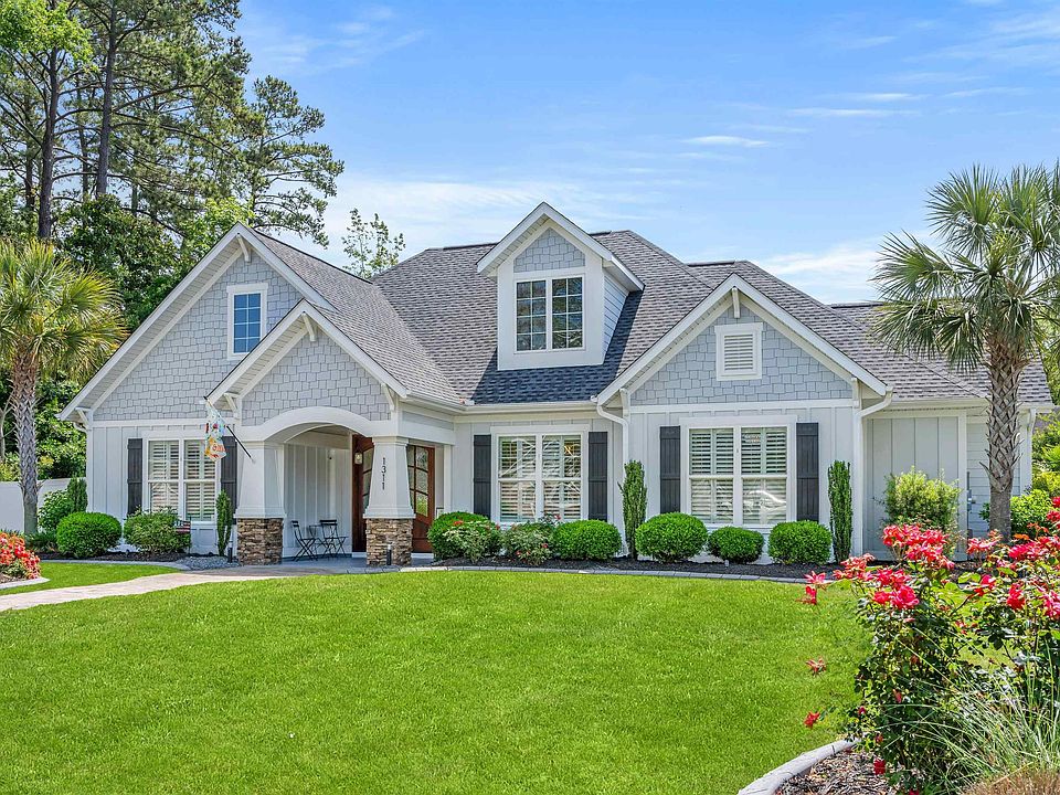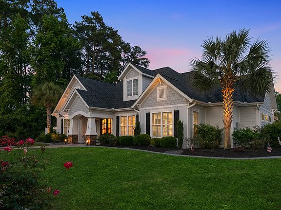 Nestled in the charming part of Surfside Beach, this delightful 4-bedroom, and 4-bathroom with an additional 1/2-bathroom offers a perfect blend of comfort & elegance with its attractive single-story custom craftsman style design and a welcoming facade property promises an ideal setting for both relaxation & entertainment. Upon entering, you're greeted by a spacious living room that features hardwood floors, shiplap walls & large windows bathing the space in natural light. Adjoining dining area with electronic blue tooth shades, seamlessly connects to a well-appointed kitchen boasting installed modern appliances, 5 burner gas top stove, wine chiller, generous size pantry, sleek solid surface countertops, and the luxurious kitchen cabinets extend to the ceiling with top section featuring glass doors & interior lighting is a visual showcase for glassware, fine China, or decorative pieces. Flex room to the right of the front door or left of the kitchen can be used as a formal dining room, a home office, or a craft room, providing flexibility to suit your lifestyle needs. Each of the bedrooms is generously sized, the primary suite offering a tranquil retreat complete with a private ensuite bathroom. Primary bath has a large smart light LED mirror, anti-fog, dimmable with dual lighting mode and double sink, custom his and hers walk in closets, walk in shower and a private commode. The other 2 additional bedrooms on the first floor also have their own ensuite bathroom. Second floor can be used as a fourth bedroom which also has an ensuite bathroom or can use this as a bonus room. There is plenty of storage beyond the fourth bedroom upstairs if you desire. Laundry Room on the first floor has received a recent makeover with custom shelving and updated washer & dryer. Adjoining the living area is a generous size Seasonal Room. The sliders will open all the way when you want to bring the two rooms together and entertain guest. This boasts an amazing gas stone fireplace and LVP flooring, electronic blue tooth darken shades. Now it is time to sit back, relax, and enjoy your backyard oasis. It is easy to when you have a large Saltwater Pool, with a tanning ledge. Allowing for lounger chairs to be placed in the water, this set up enables you to enjoy the sun and the cool water simultaneously while feeling like you are always on vacation. When winter comes no worries, you are covered, this is heated by its own devoted gas tank. To all you Golf enthusiasts, this yard has a complete 2 chipping wedge areas and a putting green allowing you to practice your golf game without leaving home. Outdoor kitchen is a must here in the south, you will be equipped with a gas grill, side burner and outdoor kitchen cooler. Patio is perfect for alfresco dining. Backyard has the privacy you desire with a newly installed 6’ Fencing, the eye and scent of Jasmine pulls you to back of the property. There is plenty of storage in this back yard, the cutely decorated shed stores all your yard equipment, while your connected shed on the backside of the garage stores all you beach bound fun. Newly set pavers throughout the property give you an expansive driveway, both on the side and in the front. Along with path to the front of your home. Many Palms Trees, Rose Bushes and other various plantings have been designed to capture the grandeur and frame the beauty of this home. And to keep everything looking beautiful there is a newly installed irrigation system. At night landscape lighting is found throughout your yard to highlight its beauty and tranquility. The property also includes an attached three-car garage that also recently received a facelift with epoxy floor coating. Another worry free is that both the HVAC and the Roof were replaced in 2023! golf cart ride to many shopping and dining options, making it an exceptional choice for anyone seeking a peaceful life by the sea. This home is not just a dwelling but a lifestyle opportunity waiting to be claimed.
