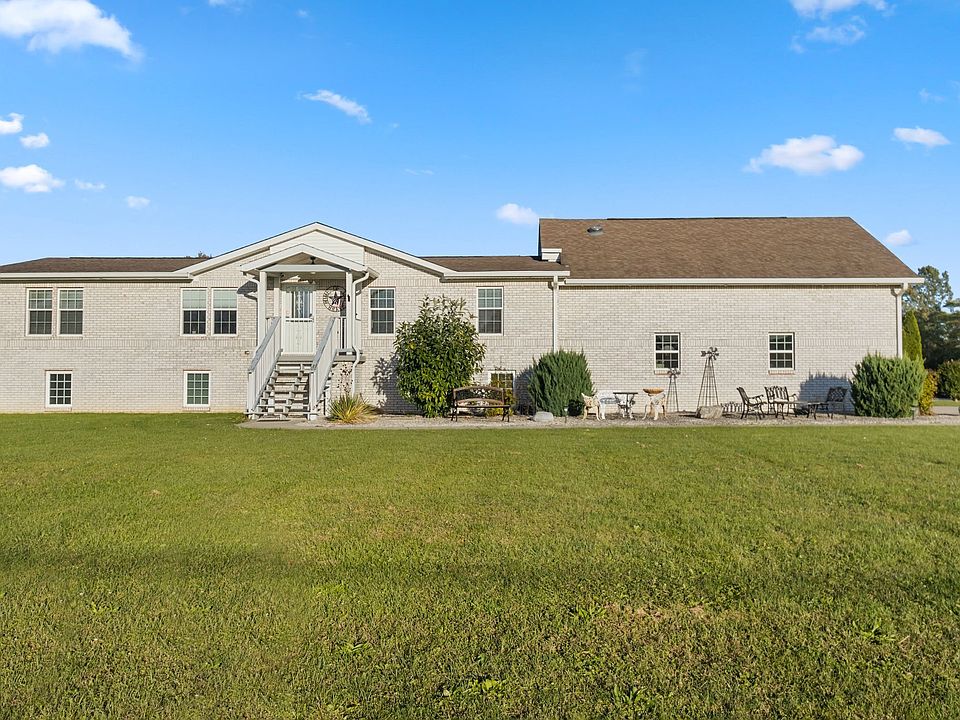 Property boasts two complete kitchens, with the lower level having its own private entrance, making it suitable for dual-family living. The master bedroom is equipped with double walk-in closets, offering ample storage space. The property offers plenty of room for various activities, and features a spacious 32'x32' attached garage. Additionally, there are two large outbuildings totaling over 6,000 sq. ft., providing extensive storage for cars, equipment, or hobbies. Among these outbuildings is a finished In-Law apartment that can easily serve as an office. The property also includes storage facilities for construction equipment and hobby items, both indoors and outdoors. Serviced by two private wells and two septic systems.