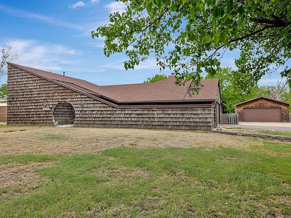 Fantastic opportunity to purchase a one of a kind modern home in the Gow Acres Addition in northwest Wichita. This is a four bedroom, two and a half bath, four car garage on over a half acre in a great location close to schools, shopping, highways, and restaurants. This unique architectural style modern home has a huge front yard, with a front private patio, large fenced in backyard, with back deck. This home is perfect for entertaining. There is a detached oversized two car garage and an attached oversized two car with an extra large shed with covered lean-to behind it. Inside the home has two large living areas, vaulted ceilings, new Anderson windows throughout, and hard surfaced flooring. The kitchen has plenty of storage and an additional room with extra countertop and storage and a portable island on casters. There are upgraded quartz countertops throughout the kitchen areas. The back living room and formal dining room has a double-sided wood burning fireplace with wooden mantles on either side. Off of the back of the home is a beautiful all glass sunroom that allows natural light and a great place for entertaining away from the elements. Upstairs is two large bedrooms including the master bedroom with attached bathroom and an extra half bath. The extra bedroom upstairs has a loft area for kids to have an extra play area and easily accessible with a ladder. Downstairs are two extra bedrooms with one having a laundry closet. Also, there is an additional bathroom in the basement. Feel free to set up your private showing today!!