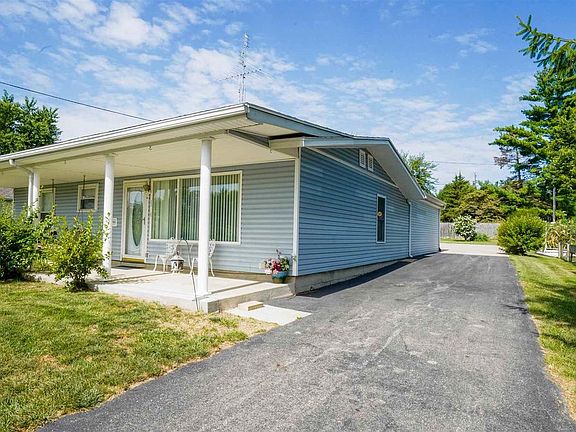 Well maintained open ranch, Great view of the River from the front covered porch! Updated kitchen and bath, Quartz countertop, backsplash in kitchen. 28 x 30 three car attached heated garage plus 9 x 13 bay with overhead door. Insulated doors, large concrete pad in rear. Seller will provide a one year HMS warranty to buyer at closing. Andersen windows. Dining room is kitchen measurement. Gas Budget is $75 and electric budget is $100