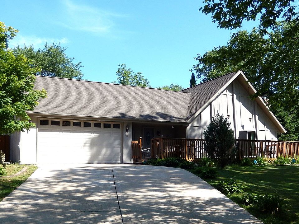 River in the Front... Wilderness in the Back! Love the outdoors? This is YOUR NEXT HOME! Want a place to dock your boat, live on the river, with no flood insurance? THIS IS THE HOUSE, with a boat slip just a few STEPS away! A-Frame Home is located on a large wooded lot! Walk in to the LR, a space cozy for quiet time! Just around the corner is the GREAT room- open to the Kitchen, Dining, FamilyRoom Stone Fireplace, Cathedral ceilings, open staircase, and 2 sliders that open to the deck! Down the hall, contains 2 BR, BA, Laundry, and a pantry! Upstairs is the Private Master Suite, W/Walk in closet and Bath. WAIT! there is more! Above the garage are the beginnings of more... so much more! Leave it as it is for storage, or finish for more rooms to the house! In back enjoy the evenings on the stamped patio, Seasons will unfold before your eyes with the woods being your neighbor to the back! Come check it out today!