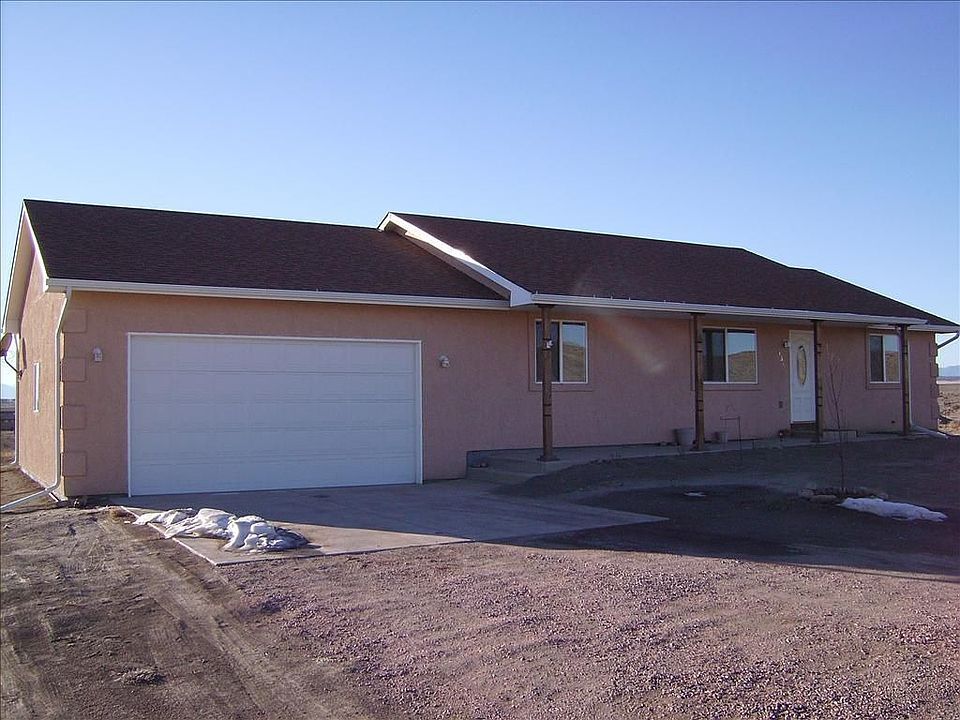 Great home with easy access to I-25. Wonderful mountain views from the Spanish Peaks to Pikes Peak. Large 1.38 acre lot sloping away from the house for good drainage, and to preserve your views forever. Mostly finished basement has two rooms as bedrooms, full egress windows, but without closets. Large unfinished storage area. New carpet just installed in basement family room and bedrooms. Radon mitigation system just installed. Three full baths and master bath does have a double sink. Vaulted ceiling in large living room. Spacious tiled mudroom includes laundry area and has space for a freezer. Huge garage is 28 x 22 (616 sq.ft.) and has tall 8 ft. door. Fruit trees in front, new gravel in drive, deck behind the house. Split master bedroom with two closets (one a walk-in).