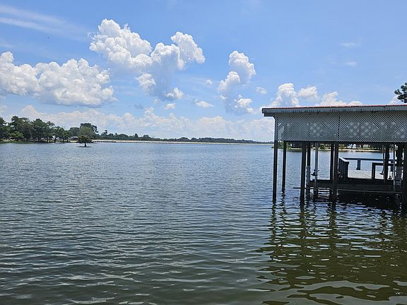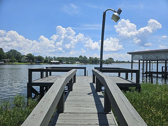 BEAUTIFUL LAKE MARION WATERFRONT HOME perfectly situated in Eagle Point Subdivision! Lake views from the front & back. This 3BR/2BA home has many recent upgrades sure to please. The GR has hardwood flooring; smooth vaulted ceiling w/ a center beam; floor to ceiling FP; built-in cabinets & plantation shutters. The kitchen boasts a sizeable quartz countertop/bar area used w/ barstools for dining, new SS appliances & oversized sink. Owner's suite & guest BR have French doors leading to a large, screened porch facing the lake. A portion of the yard is fenced & ready for pets. Other features include a whole home generator; newer windows; upgraded bath w/ jacuzzi tub; spacious front porch; circular driveway; termite bond; new dock; sea wall; public boat launch nearby & much more.
