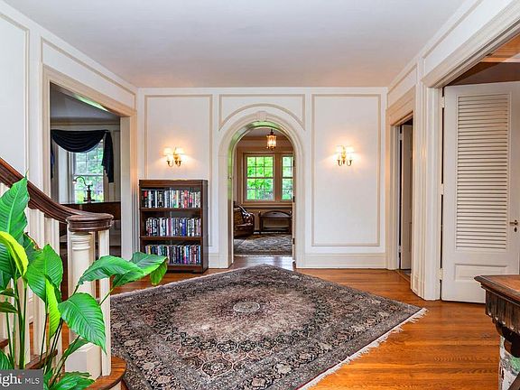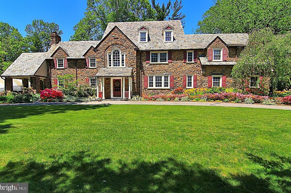 This classic stone colonial is set back on a private and quiet .90 acre lot in the estate neighborhood of Wynnewood. A circular drive brings you to the charming entrance to step into the beautiful center hall. The elegant living room is sufficiently spacious to easily include the grand piano and comfortable sitting and conversation areas in front of the fireplace. Two sets of French doors lead you to a covered patio. The delightful library/den features handsome built-ins and access to the rear patio and yard. The dining room effortlessly seats 10 and flows into the kitchen. The peninsula island (seating 6) is at the center of this great room. Ample cherry cabinetry, stylish granite counter tops, 3 sinks, 6 gas burners plus a grille, an Aga stove, and a tranquil view of the back yard help make this the heart of the home. The grand main stairway features a landing sunlit by a large palladian window. The 2nd floor contains 4 bedrooms and 3 baths and a den/TV room. The private master suite includes a recently renovated & enlarged master bath and a closet room. Two of the remaining bedrooms share a bath that offers beautiful original ceramic tiling. The remaining bedroom is a suite containing another newly renovated bath, a gas fireplace, sitting area and good closet space. And the laundry is conveniently set in the 2nd floor hallway. The back stair leads to the 3rd floor. Three nicely sized bedrooms share a bath. And the additional secret room is a real treat and makes a wonderful play room/office/craft room. The lower level rec room is really 5 areas of living space - pool table area, desk space, TV viewing & bar, eating area, and traditional rec room. There's also good storage and work space. The inground pool is thoughtfully set to the side so there's still plenty of space for tossing & kicking th ball. The completely fenced back yard is set far from the road has a perfect play area, a small vegetable garden, and a large patio entertainment area. There's a huge shed