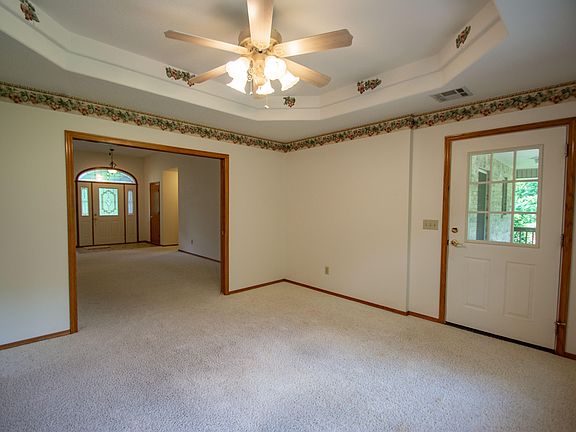 Charming full brick home in country setting, 1.2 acre lot is full of mature trees. Spacious home features 3 living areas, Living room, Family room off the kitchen and a sunroom off the back. Great back yard views from almost every room. Kitchen features an eating bar, lots of cabinets and tile flooring. Large primary bedroom and bath, double sink vanity, whirlpool tub, walk-in shower an huge closet. 2 guest bedrooms with full bath. Laundry room just off the kitchen also features a half bath with utility sink.Lower level concrete storm shelter is access from out side, back patio. Additional adjoining lots are available to purchase. Restictive covenants will allow Shop buildings to be built. Owner is a licensed Real Estate Agent in OK & a member of Blue Falls LLC.