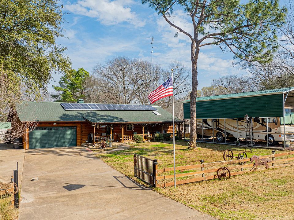 Quintessential LOG CABIN located on the best fishing lake in Texas and less than 1.5 hours from Dallas. BRAND NEW covered boat dock with a 6 ft walkway wide enough for a UTV to haul your coolers to the boat on a hot day! Dock includes 2 slips and lifts for watercraft. A true fisherman's dream with a fully functioning cleaning station, submerged pump, and large storage room for all your boat necessities. This gigantic backyard has so many things to offer including a Gazebo, Greenhouse, and 3 storage sheds. The larger shed includes a loft and AC window unit which can be used for an office, man cave or she shed. Relax or play in the 576 sf inground pool (new liner 8.21) with open decks backing up to 37ft covered back porch. This home is extremely energy efficient with an 18kw solar panel system knocking the electric bill in HALF and it is COMPLETELY PAID IN FULL! Oh, did I mention the covered RV hookup and parking pad? The interior features BEAUTIFUL knotty alder cabinets, SS appliances, large eating area, floor to ceiling STONE FP and Cedar mantel giving it that lake cabin feel. 3 BR, 2 BTH, 2 car Garage with extra storage and electric gate-remote to property. This is a lease hold property under the jurisdiction of the Sabine River Authority. Professional pictures coming soon!