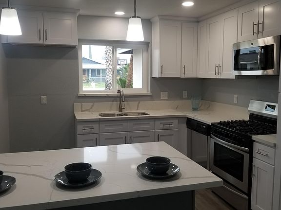 Pride of Ownership, this gem has been interiorly remodeled with new flooring, new kitchen cabinets with Quartz countertops, stainles steel cabinet handles, stainles steel appliances, new baseboards, new led lights, new ceiling fans, new kitchen island with quartz countertop, new windows, new closet and bedroom doors, both bathrooms completely redone, fresh interior and exterior paint, new north side fence and south gate, new HVAC unit, new landscaped front lawn, all this with 3 bedrooms, two baths, two car garage, patio cover, living room and family room. Call today for your private viewing.