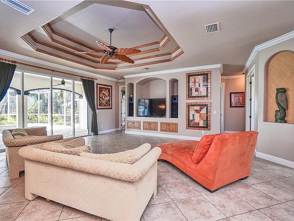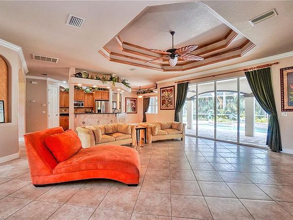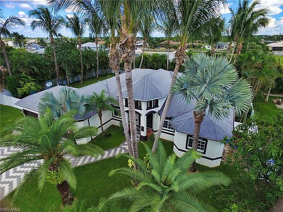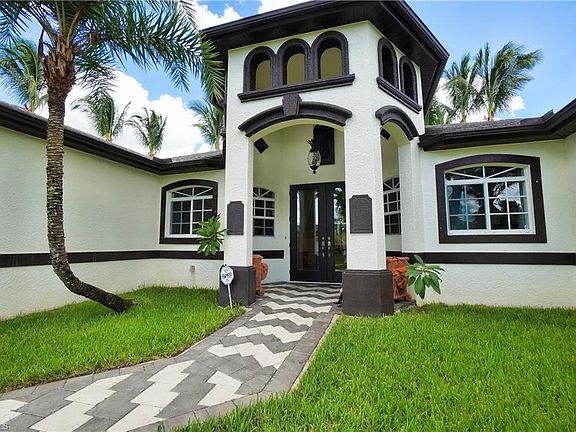 A paradise in highly desirable SW Cape Coral! The grand 16 ft. high entryway with designer paver walkways and a manicured landscape package with luscious fruit trees give this home the ultimate curb appeal. Masterful design and modern luxury are uniquely embodied in this 4 bedroom, 3 bathroom home. Including a den/study and formal dining room. This generous floor plan spans over 2,266 SF under air with 4,207 total SF and graced by soaring 11 ft. coffered ceilings. The expansive living room opens to the awe-inspiring patio and pool area which can be accessed from 3 different rooms though out the house. Pool area encompasses plenty of deck space inside and outside the screen enclosure for sun bathing. The master bedroom, is complete with walk-in closets, an opulent ensuite bath with a soaking tub and a separate glass shower. Every detail was carefully selected and quality crafted. Highlights include storm shutters, granite counter tops, ceramic tile, crown molding, wood cabinets and a stylish kitchen with stainless steel appliances. The extra large 3 car garage leaves plenty of space for a work bench and additional storage. All utility assessments are paid! HURRY IT WILL NOT LAST!!