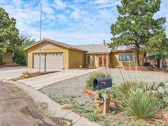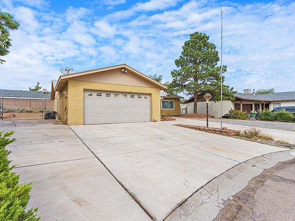 Back on the market! Check out this mostly updated home in Rio Rancho! 4 bedrooms and 2 bath with a wonderful open floorplan! Refrigerated air and a tankless water heater! Extra-large lot in the cul-de-sac with backyard access! Newer windows and lots of nice tile flooring throughout. Primary bathroom has been updated with a cool tub and nice tile. The kitchen has an extra pantry area and beautiful cabinets. Enjoy evenings in your backyard covered patio with a fire pit! Lots of space for your toys - including extra parking in front. Contact your Realtor today! New roof to be installed December 2!