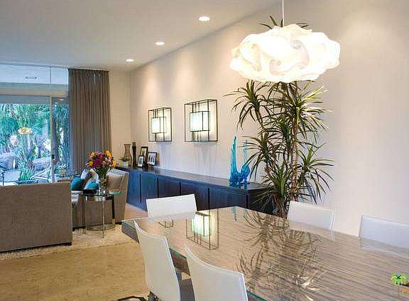 Move-in ready, 2 bedroom 2 bath, 1,822 square foot condo with private patio - perfect for entertaining! The unit features a large open floor plan that blends the living and dining areas into each other. It is a mid-century dream: polished concrete floors provide that modern feel, and the high ceilings extend throughout the unit, making it seem even more spacious. The kitchen keeps to the original aesthetic, opening to the dining area and looking out onto the private patio. Both master and guest bathrooms feature tiled showers and updated fixtures. The guest bedroom functions as a den or as a guest room, with a built in murphy bed in the closet. 1 detached covered carport directly next to unit.