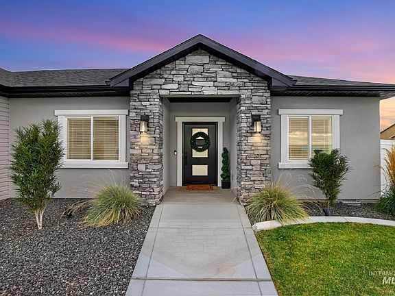 Better than new, this 2-year-old home has been thoughtfully upgraded inside and out. The open floor plan is anchored by soaring vaulted ceilings and a cozy electric fireplace in the living room, flowing seamlessly into a spacious dining area and a stunning kitchen. Here you’ll find upgraded quartz countertops & full height backsplash, custom cabinetry, a large island with waterfall ends, and plenty of workspace for entertaining or everyday living. The primary suite is a true retreat, offering a spa-like bath with a soaker tub and a walk-in closet. Two guest bedrooms and a full guest bath provide comfort and flexibility, while the laundry room stands out with abundant built-in storage for shoes and an impressive solid surface bench. The finished two-car garage is extra deep on one side—perfect for a gym, workshop, or oversized vehicle. Outside, a huge corner lot is fully fenced and beautifully designed for entertaining with a large covered patio, extended concrete pad, and natural gas firepit. RV parking adds convenience, making this home the full package.