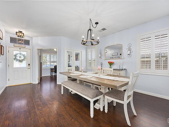 Immaculately maintained 3-bed, 1.75-bath home with an additional office, located in a highly desirable area near Riverwalk Park and premier shopping. This charming property features wood-like flooring throughout, elegant plantation shutters, and a spacious formal dining room. Enjoy cozy evenings by the fireplace or casual meals in the sunny kitchen nook. The kitchen is equipped with stainless steel appliances, a convenient bar area, and plenty of space for entertaining. A large solar system adds energy efficiency, while the beautifully landscaped, pool-sized backyard features a covered patio- perfect for relaxing or hosting guests. Clean, stylish, and move-in ready, this home offers timeless charm and everyday comfort throughout!