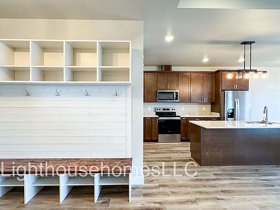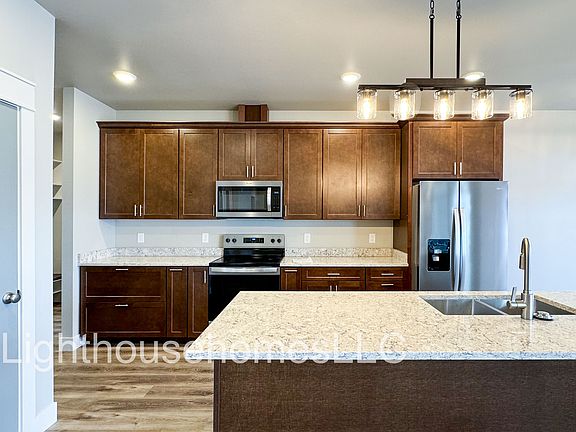 Message for more information and application. STILL UNDER CONSTRUCTION. PHOTOS not available until it is complete. This stunning 3-bedroom, 2-bathroom, 1,550 sqft home offers modern luxury and thoughtful design. The open-concept kitchen, dining, and living area features coffered ceilings, a custom fireplace, large windows, and a chef\'s kitchen with a spacious island, quartz countertops, and a pantry. The primary suite is a private retreat with a walk-in closet, custom tile shower, dual vanities, and transom windows for natural light. Custom-built lockers at both entrances add style and function. Enjoy the covered patio, fenced yard, underground sprinklers, and 2-car garage in a peaceful neighborhood. This home is the perfect blend of elegance and practicality-schedule a showing today! Looking for long term tenants. Tenant pays all utilities. Approved pets $50/month per pet. Tenant covers lawn care and snow removal.