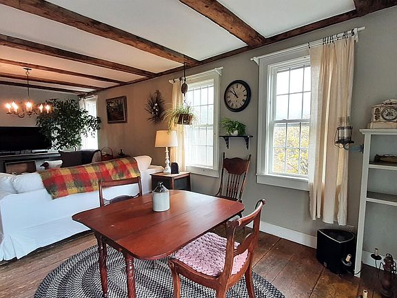 Come fall in love with this 1850's farmhouse. Enjoy the 10.1+/- acres on a quiet, country road that has space for gardening, relaxation and play. Feel at home inside with it's natural light and beautifully maintained rooms. The home features many important updates, including the septic, roof and renovated basement, while maintaining the cosmetic architectural mouldings, beams, wide-board flooring, interior doors and built-ins of the past. The kitchen, with granite countertops, large windows, prep sink and easy-flow design, opens into the dining and living space, with French doors to the back deck and patio. The front door leads you through the entryway with an adjacent bedroom/office space, and there's an additional adjacent multi-use room off of the living area. The primary and a second bedroom are on the second floor, which also offers additional storage in the eves. Updated bathrooms on the first and second floors combine a new and antique feel. The state forest, hike/bike, and VAST trails are all minutes away. Located just minutes to downtown Randolph, and close to Vermont Technical College, Gifford Medical Center, Norwich University, and I89. The property is being sold as-is.