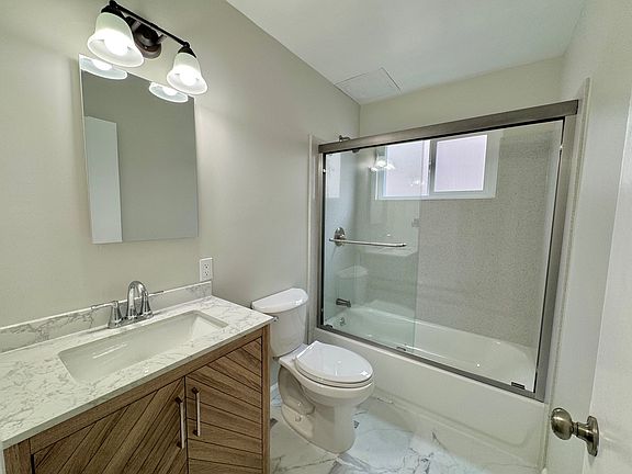 Newly renovated 2 bedroom apartment in Alameda. This apartment unit is on the first floor and away from the street. This apartment features: new bright wood-like flooring, new appliances in the kitchen, and new paint. The bathroom features a tasteful vanity and a newly installed shower with stone paneling. A covered off-street parking and additional storage closet is included in the rent. There is a shared coin operated laundry on site. tenant responsible for all utilities except for garbage. 12 month lease required.