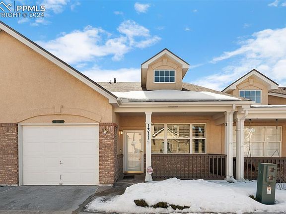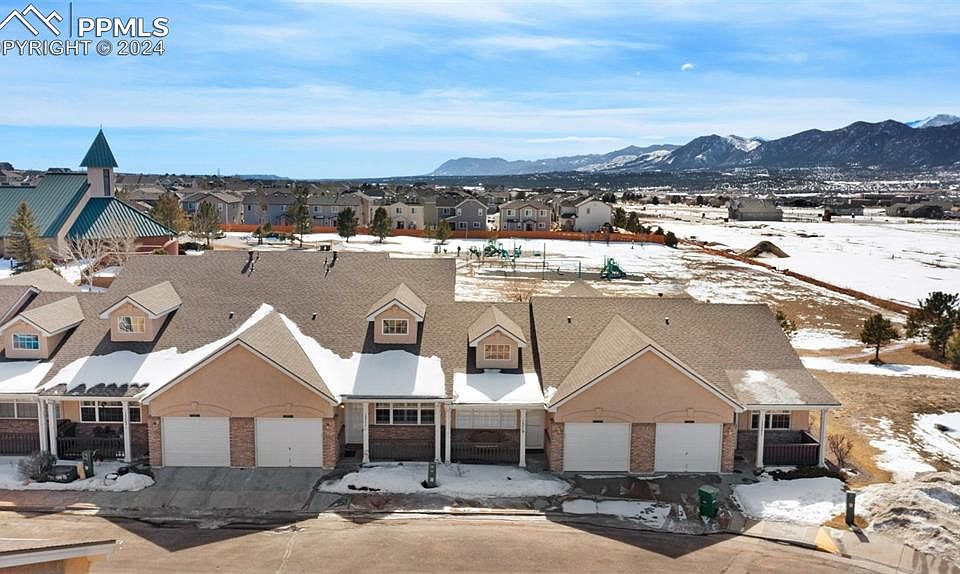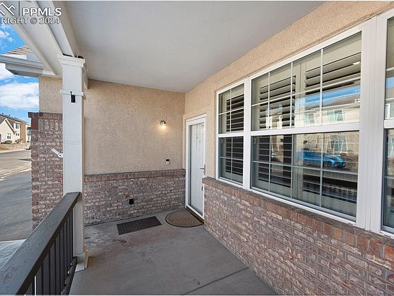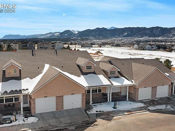 Impeccable town home in popular Monument Villas. Total maintenance-free exterior. Complete main level living, to include master, laundry. No step entry from front, garage and rear patio. Water, sewer, trash included in HOA dues. Terrific location - walk to Monument Academy, restaurants. Five minute drive to large shopping area. Wonderful views of Pikes Peak, Front Range and AFA. Charming Monument offers Art Hop, band concerts at the local park, boutique shopping, award-winning library and all the amenities you need. Home was totally updated in summer of 2017 with all new flooring, light fixtures, dresser vanities, faucets, flooring, paint, Nest thermostat, water heater, top of the line solid granite kitchen counters. Ceiling fans, shutters on large front window. Kitchen sink is granite composite with instant hot water tap. Also in 2017, all new stainless LG appliances to include gas range/oven w/double oven, French door refrigerator with two freezer drawers, 3-rack dishwasher, microwave, disposal. Pantry closet has pull-out drawers for tons of storage. All three baths have tile floors, dresser vanities, granite counters, new fixtures. Windows are approximately 9 years old. Soaring ceiling in great room/dining room adjacent to kitchen with breakfast bar. Powder room. Master has walk-in closet with Classy Closets organization to include built-in dresser. Master en-suite bath includes double vanity in one room and through a door is toilet and walk-in shower. Upstairs includes two bedrooms & a full bath, (also a two-room configuration). plus a 3rd room perfect for study/storage/playroom. Relax on front covered porch or rear patio through sliding doors off master. Ceiling-mounted storage racks in garage. Coat closet. Under stair storage. Charming club house amenities w/large-screen TV, full kitchen, weight/exercise room w/TV, patio. Backs to open church property. Designated parking spot in front of the house and visitor parking across the street.