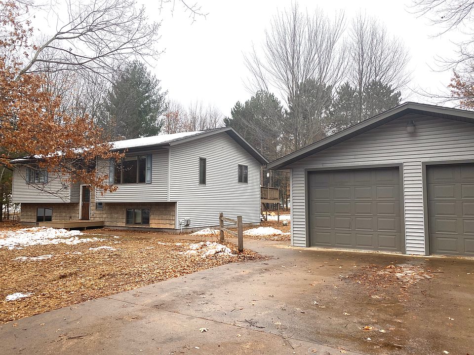 Beautiful open-concept home with oak and ceramic floors, custom kitchen cabinets, all new (less than 6 months) stainless steel appliances, huge walk-in pantry, Anderson windows, large bedrooms, upper and lower level family rooms, lower with kitchenette (appliances included), recreation area and gas fireplace. Washer and dryer included. Two double-door garages, main insulated 2-car garage (864sq ft) and separate heated and fully insulated parking and workshop space (1200sq ft) in back. Corner lot with many trees and open yard space. A must-see! Please contact us directly at 715-764-2138 (call or text)