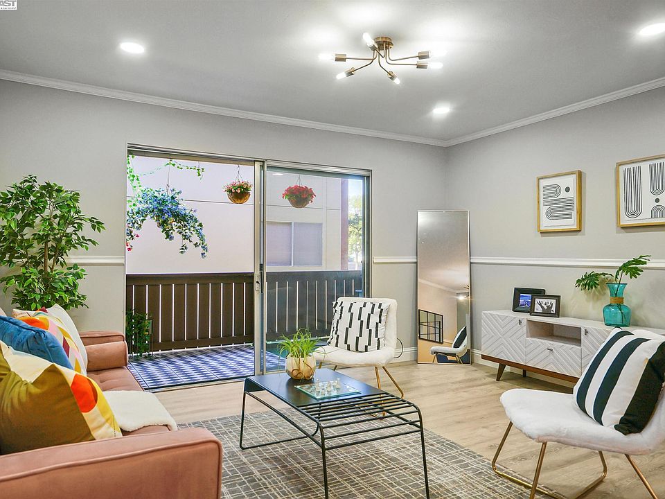 Located in the highly desirable Park Webster gated community this updated one bedroom one bath condo is chic and move in ready! Fresh paint, updated foorings, baths, and light fixtures. The open kitchen has open floor plan with dining and living room adjacent to the private balcony, a cozy place to enjoy afternoon breeze. The unit also comes with a private parking space and nearby storage unit in the building. The community features resort-style amenities including a laundry room, pool, gym, sauna, common recreation space and a peaceful koi pond in the large center courtyard. The Park Webster community is located just steps away from shops and dining of Webster Street.