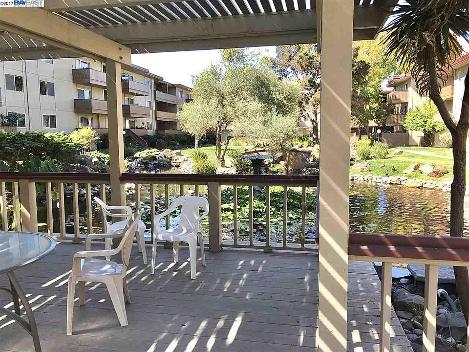 This Corner/End Unit is in the perfect peaceful location that faces the inner garden, koi pond and pool area. It has an open floor plan that includes 2 bedrooms. You enter through a security gate, and you can walk to the beach & park, the shops, farmer's market, AC Transit Express to San Francisco & a short distance to the Ferry. There are charming cafe's nearby, or just relax on your private balcony sipping your morning coffee. This gated complex offers a pool, gym, community laundry and library. Parking for this condo is enclosed.