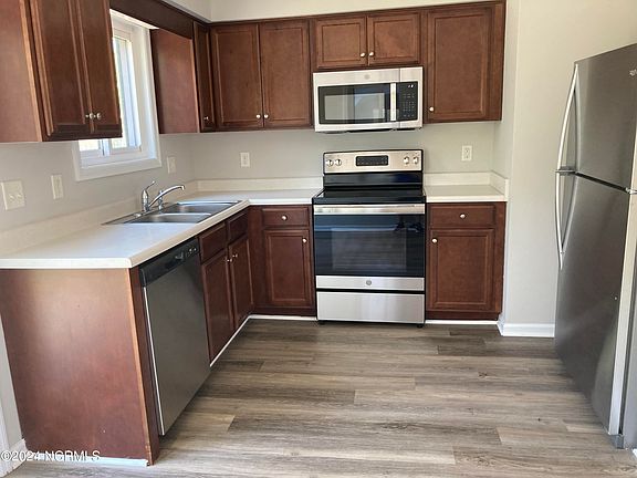 Updated Two Bedroom, two Bath first floor condo. Fresh paint throughout, new LVP flooring in kitchen, DR, and baths, new carpet in living area and bedrooms, and all new SS appliances. Kitchen cabinets and bathroom vanities were upgraded a few years ago. Covered front porch and outdoor back patio. Convenient location to NHRMC and the many medical offices in that area and minutes to downtown.