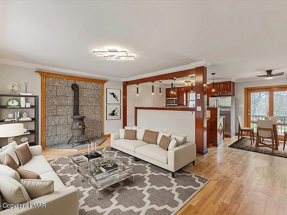 IN-LAW SUITE!! Welcome to your new home at 1311 Whispering Hills Ct, nestled in the serene surroundings of Effort, PA. This well-maintained, 2500 sqft property boasts 4 bedrooms and 2 bathrooms, perfect for those seeking comfort and convenience in their living space. Step inside to find elegant hardwood floors throughout the main floor and crown molding that adds a touch of sophistication. The kitchen is a chef's delight, featuring oak cabinets with ample storage, granite countertops, and new stainless steel appliances. The dining and living area, warmed by a wood-burning fireplace, create a welcoming atmosphere for relaxation and entertainment. The lower level includes an in-law suite with a full bathroom, additional living space, a bedroom, and direct access outdoors through a walkout. This is finished with durable, stylish wall-to-wall porcelain tiles, making it both practical and attractive. Outside, the large attached deck provides a perfect spot for outdoor gatherings and leads to a fenced-in backyard, ensuring privacy and security. The property also includes a spacious 2-car detached garage equipped with automatic door openers. Located in a peaceful neighborhood, this home is just a stone's throw away from local attractions and essential amenities, offering both tranquility and convenience. Whether you're enjoying the indoor comfort or exploring the outdoor charms, this home is ready to cater to all your needs. Embrace the blend of functionality and elegance at Whispering Hills Ctyour ideal home awaits.