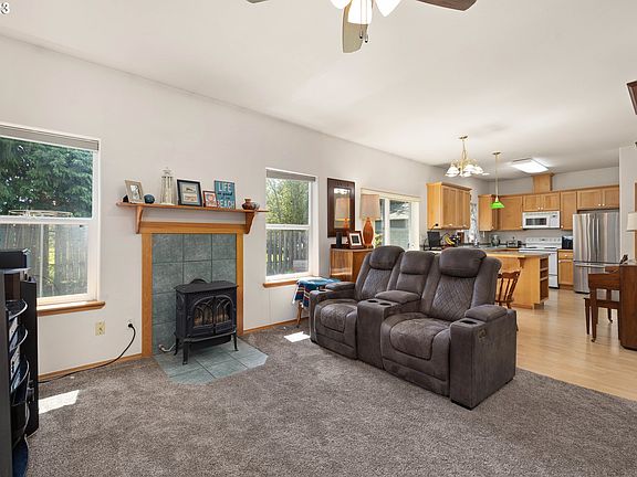 If you have been seeking an affordable Gearhart address, here is your chance. This stunning single level cedar shingle home is the epitome of Pacific Northwest living and just minutes away from the beach. As you step inside, you'll be greeted by an inviting interior with gas stove and an open floor plan that seamlessly blends the living, dining, and kitchen areas. In the kitchen you will find wood cabinetry, and bar seating. Step through the sliding door and into the fenced backyard, complete with deck perfect for relaxing after a long day at the beach or exploring the nearby parks. The spaces are great for entertaining, but if hiding out and cozying up by the stove on a chilly evening is more your style, there is no judgement here. With an attached two car garage, including a built out storage area, a dedicated laundry room inside the house, en suite bathroom in the primary bedroom with additional storage, and an extra Tuff shed, you have the space to store all the toys to live your dream life on the Oregon Coast.