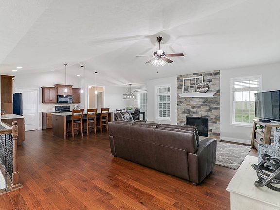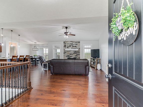 Incredible FIVE bedroom, walk-out ranch with NO backyard neighbors in sought after Grove on Kickapoo Creek! Open floor plan featuring cathedral ceilings, hardwood flooring on main floor & added to bedrooms! Fantastic kitchen boasts granite counters, stone backsplash, newer appliances & cozy breakfast area. Five generous sized bedrooms including the master bedroom with private ensuite bath with huge walk-in closet. Enormous walkout basement showcases 2 bedrooms & a 3rd full bath, as well as tons of entertaining, game area or play room space. The beautiful private yard has a covered porch off the main level and an expansive patio off of the lower level. A stone patio with fire pit and pergola was added in 2017. Hardwood & 5th bedroom addition with egress & walk-in closet: 2020. Samsung black stainless fridge: 2021. DW: 2020. New neutral paint in majority home: 5/2021.