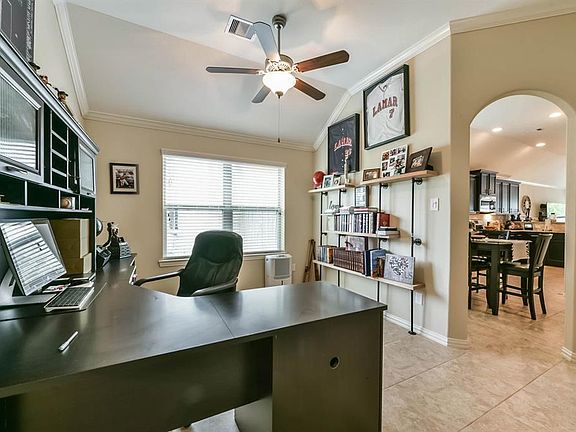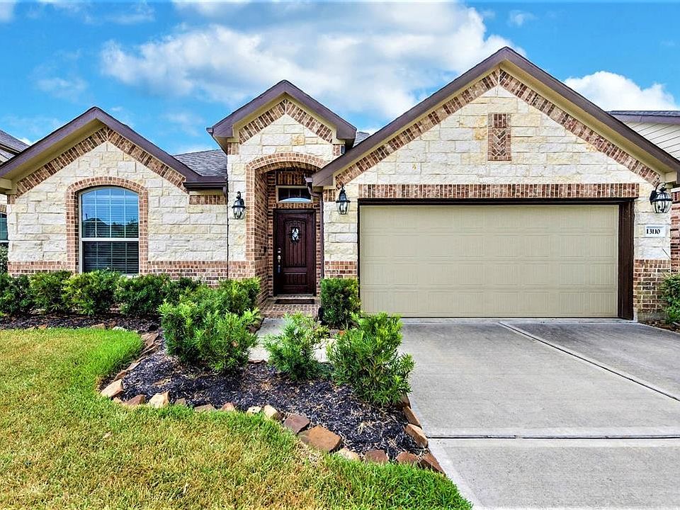 Gorgeous solid wood front door welcomes you to your beautiful new home, in this pleasing and sought-after community of Lakes of Savannah! Just minutes to Pearland and the medical district! Upon entry you are greeted by double glass doors leading to private office with angled ceilings, crown molding and upgraded lighting. Formal dining has been upgraded with beautiful lighted ceiling fan(original chandelier is available upon request.) Kitchen has beautiful granite countertops, stainless appliances and is open to living area, making it perfect for your entertaining needs. Retreat to your spacious master suite complete with angled ceiling and plenty of natural light. Luxurious master bath has double sinks, huge garden tub & a huge tiled walk-in shower complete with custom shower seat! All bedrooms have plush carpet with upgraded lighted ceiling fans and spacious closets. Backyard is a great space with covered porch & patio with stamped concrete! Washer, dryer & fridge are all included.