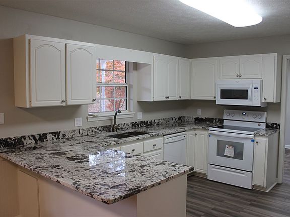 Located on a wooded 1 acre lot, this renovated home offers an open floor plan with three bedrooms and two full baths. The kitchen has been updated with new granite , appliances and is open to the dining area. The wall to ceiling rock fireplace is the focal point in the living room which opens to a large rear deck. The master suite offers nice space which includes dual vanities and a walk in closet. The two additional bedrooms are oversized and share a renovated full bathroom. Additional features include harwood flooring, ceramic tile, new carpet, an oversized garage and a rocking chair front porch.