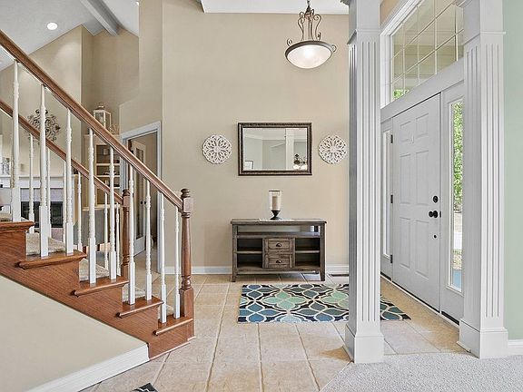 Stunning 4 bedroom, 4 bath, 3900+ fin. sq. ft. home set on 1/3 acre lot in desirable Hawthorne Park. An inviting covered front porch w/transom entry door welcomes you to an open floor plan. Columns define the Dining room area w/crown molding & gently arched alcove ideal for buffet or serving table. Beveled glass French doors to Den/home office featuring a tray ceiling. Great room is highlighted by a soaring vaulted ceiling, built-ins flank the gas log fireplace, plus huge double stacked windows for natural lighting. Spacious eat-in kitchen is loaded with extras: gorgeous cherry cabinetry, wine rack, pendant highlighted island w/open shelving, an art niche, granite countertops, under mount sink, tiled backsplash, large pantry, plus sunny window over the sink for backyard views. Dream laundry room is equipped with cabinetry, hanging bar, sink, folding counter & handy laundry chute. Easy care ceramic tile flooring in kitchen, entryway, laundry, hallway & all bathrooms. Granite in 3 baths. Retreat upstairs to the master suite offering a tray ceiling w/rope lighting, a deep walk-in closet, and private en-suite bath has twin sink vanity, tile surround jetted tub, a separate shower & convenient linen cabinet. 3 additional bedrooms are furnished w/walk-in closets & ceiling fans, plus a 2nd full bath w/twin sinks complete this floor. The finished daylight basement ensures there is plenty of room for friends & family gatherings; a family room, rec room & convenient half bath. Newly finished bonus room perfect for an exercise or craft room. An expansive tiered deck extends your living & entertaining space. 3 car garage adds storage & flexibility, plus a practical service door. Pride in ownership shines throughout this outstanding home. Close to walking trails. Students will attend award winning Carroll schools.