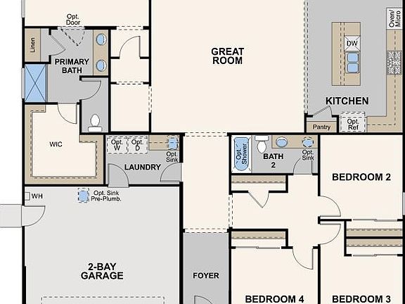 The Sienna provides over 2,200 sq. ft. of living space in a single-story home. The entrance offers direct access into a den and delivers direct through-views into the great room. Ample light floods the space through large windows and a sliding glass door which provides access to the large covered patio. The kitchen addresses the great room and gains full visual access to the spacious media wall. The kitchen nook can accommodate up to a six-person table. Off the main entry hall, three bedrooms share access to a centrally-located hall bath, as well as a large coat closet. The Primary Suite, accessible from the great room, is tucked at the rear of the home, a private retreat away from the additional bedrooms at the front of the home. The en-suite bath features dual vanities, a convenient linen closet, and a compartmentalized lavatory for additional privacy, and the spacious walk-in wardrobe offers room to spare. This home features the following options and upgrades: Trash pull-out in kitchen White quartz counters in kitchen Hard surface flooring in main living area Tile backsplash in kitchen White cabinetry And more! Located on Lot 12 of Block 13 at Greenhills Estates by Century Communities