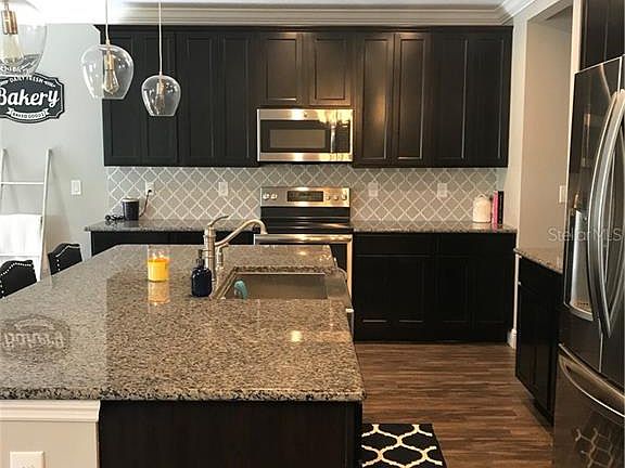 - Interior Features: Ceiling Fans(s), Eating Space In Kitchen, High Ceiling(s), Master Bedroom Downstairs, Open Floorplan, Split Bedroom, Walk-In Closet(s), Crown Molding, Solid Wood Cabinets, Solid Surface Counters, In Wall Pest System, Tray Ceiling(s)