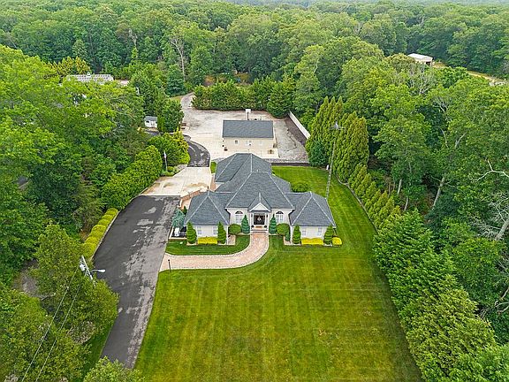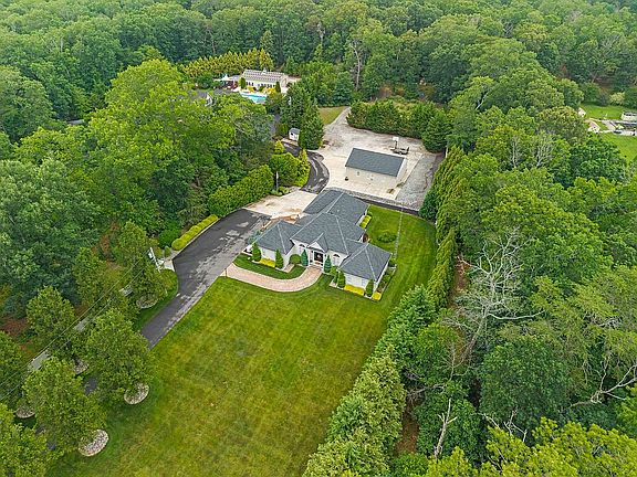Set back approximately 150 feet from the road, this unique property spans 4.84 acres of beautifully landscaped grounds, ensuring maximum privacy. Enjoy resort style amenities including a fully sized sand volleyball court, 1/2 basketball court cozy fire pit, and plenty of additional parking . Additionally the property features a detached 1,280 square foot custom built block building with heated floors, hot & cold water, floor drainage and a separate room for ample storage options.