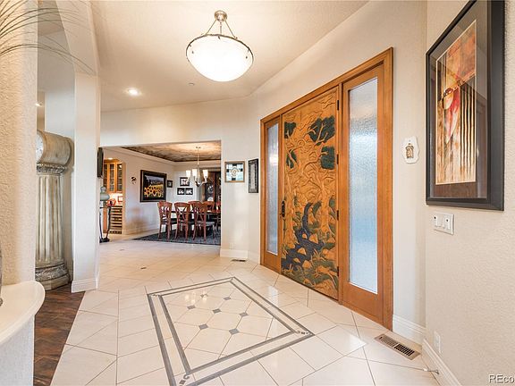 Situated on one of the best lots in gated Whisper Canyon- this custom home with awe inspiring views and outdoor spaces is sure to impress. Main floor master suite with private balcony, retreat area & spa-like master bath boasting steam shower and heated towel racks, Heated floors in Master bathroom. The main level living is complete with study, lovely great room, large open kitchen & formal dining area. The upper level is ideal for a kids wing- complete with gaming area or toy room. This home has an elevator shaft. The Finished Walk-Out Basement(9-10 Ft Ceilings) is perfect for entertaining with a spacious rec area, open theatre, large bar/pub, work-out room or additional bedroom and guest suite. you will love the doggy bath area. The large lot is private and secluded with sweeping views of the open space and amazing Colorado mountains. Playground area, dog run and so much more. Easy to make loft a 6th bedroom.
