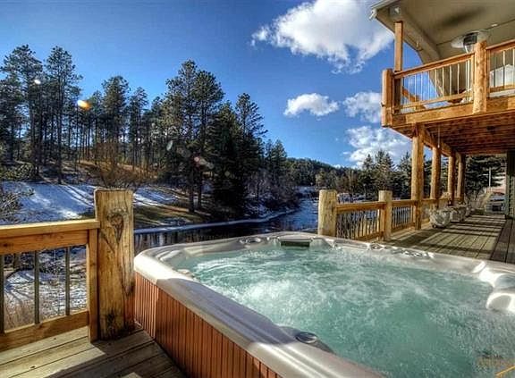 A rare find on Rapid Creek. Immaculate home on a peaceful creek front setting only 15 minutes from downtown Rapid City. Enjoy the creek frontage from either the two tier deck with hot tub or detached deck right on the water! Attention to detail throughout the home. Hard wood floors, beautiful Riss Brother cabinetry, granite counter tops, plush carpet, amazing bathroom tile work, formal dining room and inviting open layout. Spacious master bedroom on the main level with heated tile floors in the bathroom, custom walk-in shower, jetted tub and an oversized walk-in closet. Downstairs you have two additional bedrooms, an office, bathroom, large family room with patio doors out to deck and hot tub. Additionally, there is a large storage and workshop area with double doors to allow small machine (ATV, lawnmower) access. Call for a detailed Features list.