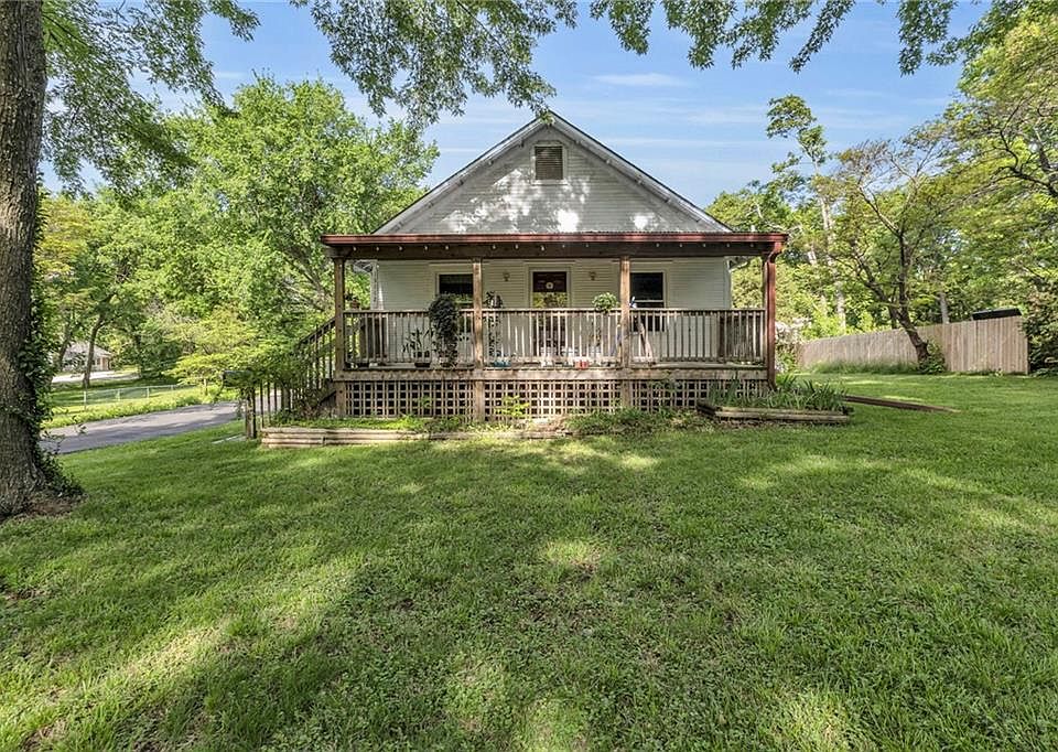 CHARMING HOME ON 0.71 ACRES M/L IN GRANDVIEW! Fresh Exterior Paint! Character abounds! Kitchen includes Custom Cabinets, granite countertops, gas stove and pantry! Main level Bedroom expanded to have office space with built-in desk! Bonus Room off Kitchen perfect for office, crafts or non-conforming (no closet) 2nd bedroom. Upstairs find a Spacious Light and Bright Primary Suite with 2 closets--1 walk-in and 2nd bathroom. Plenty of space to enjoy the outdoors from the long covered front porch, multi-tiered deck and bonus covered patio by the shed! Raised garden beds ready for your green thumb. Long Driveway offers plenty of parking! Great Location close to parks and just minutes to major highways to enjoy ALL KC has to OFFER! WELCOME HOME!