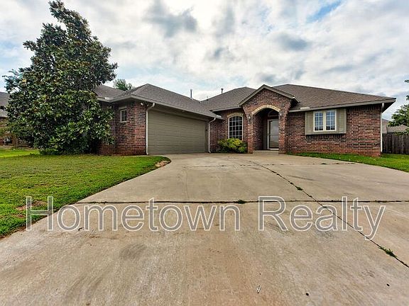 Get the best of both worlds with this updated home off SE 29th and Hiawassee Road in Choctaw! Recently updated with fresh paint throughout, we especially love the huge fireplace, plush carpeting, high ceilings with ceiling fans and stunning kitchen - complete with custom countertops, stainless steel appliances and tons of counter/cabinet space! All three bedrooms are similar in size but the main suite will have you swooning with it's huge attached bathroom and walk in closet. Great storage space throughout and a large, fenced backyard with patio space. Amenities: