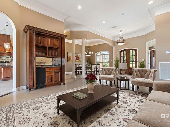 Nestled within the prestigious Dominion Farms neighborhood in Fairhope, AL, this large estate offers a rare blend of luxury, comfort, and Southern charm on an expansive 2.9-acre parcel, where every detail has been meticulously crafted for luxurious living. This property features a total of 6 bedrooms and 6 full bathrooms, thoughtfully arranged to provide both privacy and convenience. Within the main residence, three spacious bedrooms are accompanied by three full bathrooms, including the lavish primary bedroom suite boasting hardwood floors, two walk-in closets, and a luxurious ensuite bathroom with a spacious shower adorned with dual shower heads. The residence also includes three additional bedrooms and bathrooms located in separate studio apartments. Two of these studios are situated in a guest house, each featuring a full kitchen and private living space, providing flexibility and independence for extended family members and guests. The third studio is nestled above the garage and includes a kitchenette, great as an additional bedroom or game room. Entertain with ease in the elegant dining room or gather in the well-appointed kitchen, equipped with a gas range and trash compactor. The expansive den offers a wet bar with a built-in ice maker and ample space for hosting gatherings. Additionally, the home includes a private study, perfect for a home office or library. Step outside to the large back patio and enjoy the views of the sparkling gunite pool and hot tub, surrounded by lush landscaping and manicured grounds. This residence offers peace of mind with its brand-new fortified roof, tankless water heaters, robust air-conditioning systems, and built-in generators. Experience the best of Southern living in this exquisite Fairhope estate! *Buyer to verify all measurements deemed important.* Buyer to verify all information during due diligence.