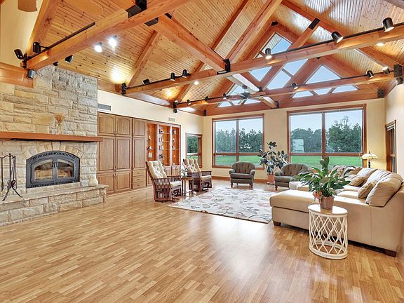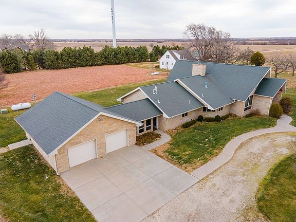 2 homes on 1 lot. This 5.2-acre property boasts two distinct homes, each offering unique features and ample living space. The main home, constructed in 2001, is a sprawling ranch-style residence spanning approximately 3,200 square feet. It features a welcoming zero-entry design, an expansive open floor plan with impressive 22-foot vaulted ceilings adorned with decorative beams, and a cozy stone wood-burning fireplace with a blower. The kitchen is well-appointed with granite/Corian countertops, a pantry, and an island with an eating bar. The master bedroom is generously sized, complete with a walk-in closet and cedar closet, while the main-floor laundry room adds convenience. Radiant heated floors provide comfort throughout, and an attached 2-car garage, with a 22x15 sunroom with windows on both sides of the room, offers extra space and utility. Additionally, a substantial 60x48 Morton Building with concrete flooring and ample electricity ensures versatility for various needs. The second home, dating back to 1958, is excellently maintained and spans approximately 1,700 square feet. It comprises three bedrooms, two bathrooms, wood floors, laundry facilities, a kitchen, a spacious dining area, a living room, and an office space. This home also features a cedar closet and benefits from newer heating and air conditioning systems. A cinder block full basement remains unfinished, and a barn/shed provides additional storage space. This second dwelling is versatile, serving as an ideal guest house, rental property, or accommodation for extended family members. The land encompasses 5.2 acres, with approximately 2 acres of prairie grass and a mature shelter belt, enhancing privacy and aesthetics. For utility, the property is equipped with rural water for drinking and a well for irrigation purposes. With two well-maintained homes, extensive amenities, and ample acreage, this property offers a unique and versatile living arrangement. Property cannot be split