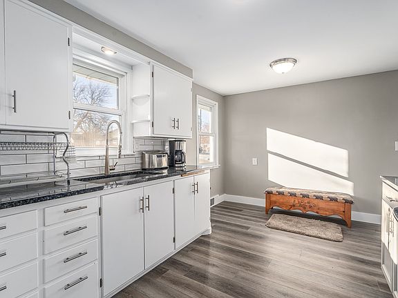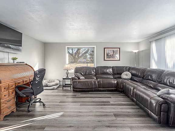 Beautifully updated Valley Rancher. New LVP floors, granite countertops, backsplash, and refrigerator in kitchen. LVP flooring extends into living room area. New paint upstairs as well. Vinyl windows throughout first floor. Upstairs bathroom has been completely updated. Basement could be used as a large family room or very large non-conforming 3rd bedroom. Aluminum siding, and a very nice breezeway to keep you dry between the house and the large 768 sq ft shop garage. Private and roomy backyard. Sprinkler system in front and back.