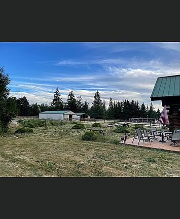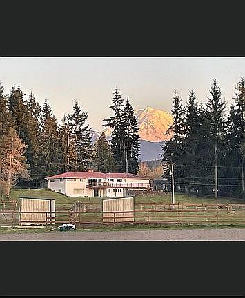 Amish built log home from Libby, MT.Open & very bright! .Fabulous for horses.9 pastures cross fenced and gated 4 with sheds. 2 paddocks off of pole barn with graveled runs. 4 stalls and 2 foaling stalls in barn. tack room.DO NOT require yr round feeding. Deep sand base pastures prevents hoof problems.187ft well,, 15gal per min,.30x60 barn,7 stalls, tack rm.36x48 . Plenty of trailer storage.Storage for 30T hay in pole barn with 2 paddocks. Huge outdoor arena, 3 car garage..Mom In Law home/rental 4bd 2ba separate septic/power. Hot wire on all fencing.. Mount Rainier view.